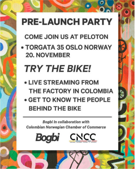 20th of November CNCC and member Bogbi held a pre-launch party. We had a great crowd of over 35 people join our event. People got a chance to try the bikesand there was a live streaming from their factory in Colombia. Looking forward to the official launch next year!! Special thanks to team BogBi, CNCC and Peloton Oslo for being such a great host!